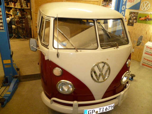 Es handelt sich um ein unrestauriertes Fahrzeug Bj. 1966 mit originalen 76000 Km, derzeit zwar tiefer gelegt und mit Karmann-Getriebe und Hinterachse ausgestattet werden wir die Serienfahrzeughöhe wieder herstellen. Jedoch wird das komplette Fahrwerk und die Bremsanlage auf den Stand vom VW Bus ab Bj. 73 mit dem 2 LIter 70PS Motor Einzug erhalten.