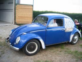 Übergeben wurde im Sep. 08 folgendes Fahrzeug: Käfer Bj. 1963, Zustand 3+, Kotflügel-Hauben-Seite neu lackiert, neuer Teppich, restaurierte Porsche-Stahl-Felgen in 4,5 & 5,5 x 15 mit Mischbereifung 145/60/15 & 205/65/15, generalüberholte Bremsen, überholter Motor, Elektrik instand gesetzt, Tieferlegung, H-Abnahme und Tüv ohne Mängel.