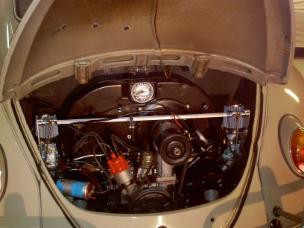 Natürlich kann man die Serienbedüsung dieser Vergaser nicht auf den VW-Käfer mit seinen 1300 ccm Hubraum aplizieren. Deshalb haben wir, um ein optimales Kraftstoffgemisch zu bekommen, die Düsen aus den Vergasern (Weber 34 ICR, selbe Düsen wie in der ICT Baureihe) vom Simca 1000 verwendet. Diese sind wiederum zu klein dimensioniert und wurden aufgerieben. Die Vergaser in Verbindung mit der Zündanlage liefert nun ein astreines Verbrennungsverhalten und Performance.