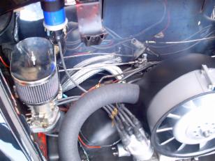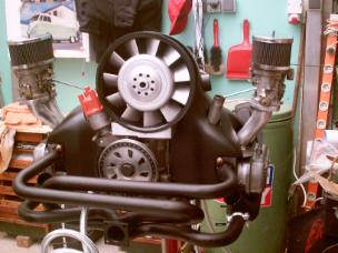 - Motor mit ca. 90 PS nach Vorbild aus dem 60/70igern, 1641ccm, W110, 9:1, 40 DLRA, 30Ps-Gebläse, Serienköpfe optimiert, externer Ölkühler, Ölfilter.
